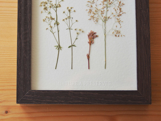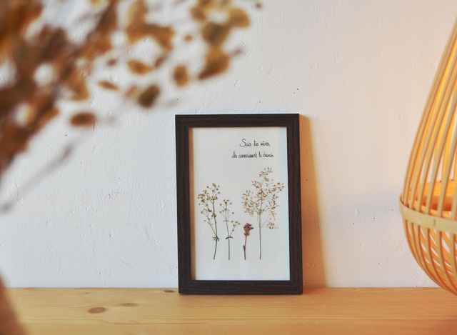 Les herbiers sont des tableaux « vivants ». Avec le temps, les plantes changeront légèrement de couleur pour avoir des teintes plus pastel. Pour une durée de vie optimale, installez votre herbier à l’abri de la lumière directe du soleil :)