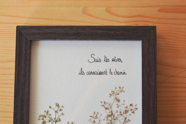 Mini tableau herbier citation "Suis tes rêves, ils connaissent le chemin".