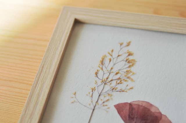 Les herbiers sont des tableaux « vivants ». Avec le temps, les plantes changeront légèrement de couleur pour avoir des teintes plus pastel. Pour une durée de vie optimale, installez votre herbier à l’abri de la lumière directe du soleil :)