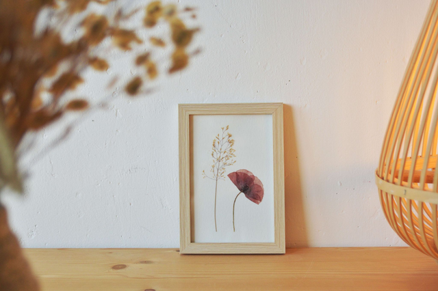 Tableau 10*15 cm - Mini herbier coquelicot