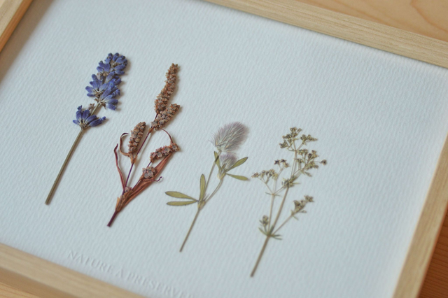 Les herbiers sont des tableaux « vivants ». Avec le temps, les plantes changeront légèrement de couleur pour avoir des teintes plus pastel. Pour une durée de vie optimale, installez votre herbier à l’abri de la lumière directe du soleil :)