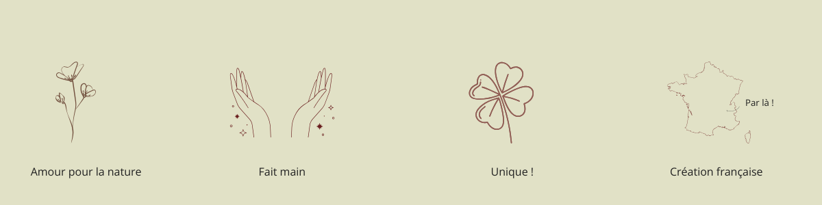 Mes créations sont entièrement réalisées à la main. Chaque étape est minutieusement élaborée par mes soins : la cueillette, le séchage, la création d'un herbier, l'achat des fournitures, la prise de photographies, la vente, etc. Je suis l'unique cheffe d'orchestre de Nature à préserver !